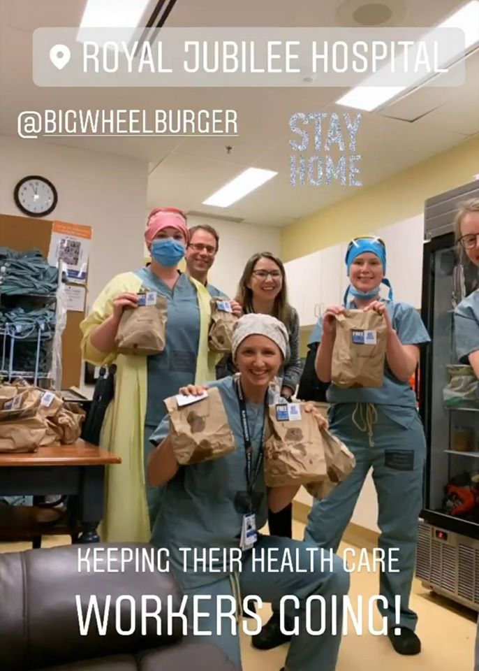 To everyone who has donated to our Big Wheel Burger Community Foundation, check out where your awesome contributions are going! We have been making food drops at the Royal Jubilee Hospital to show our frontline workers just how much the community appreciates them! We matched dollar for dollar your donations for these deliveries and we have to give a huge shout out to our friend Sagar who donated generously to make these last few drops happen.